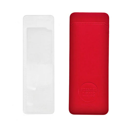 A slim acrylic magnifying lens that comes in a PVC case by Hightide. Available in 3 sizes.